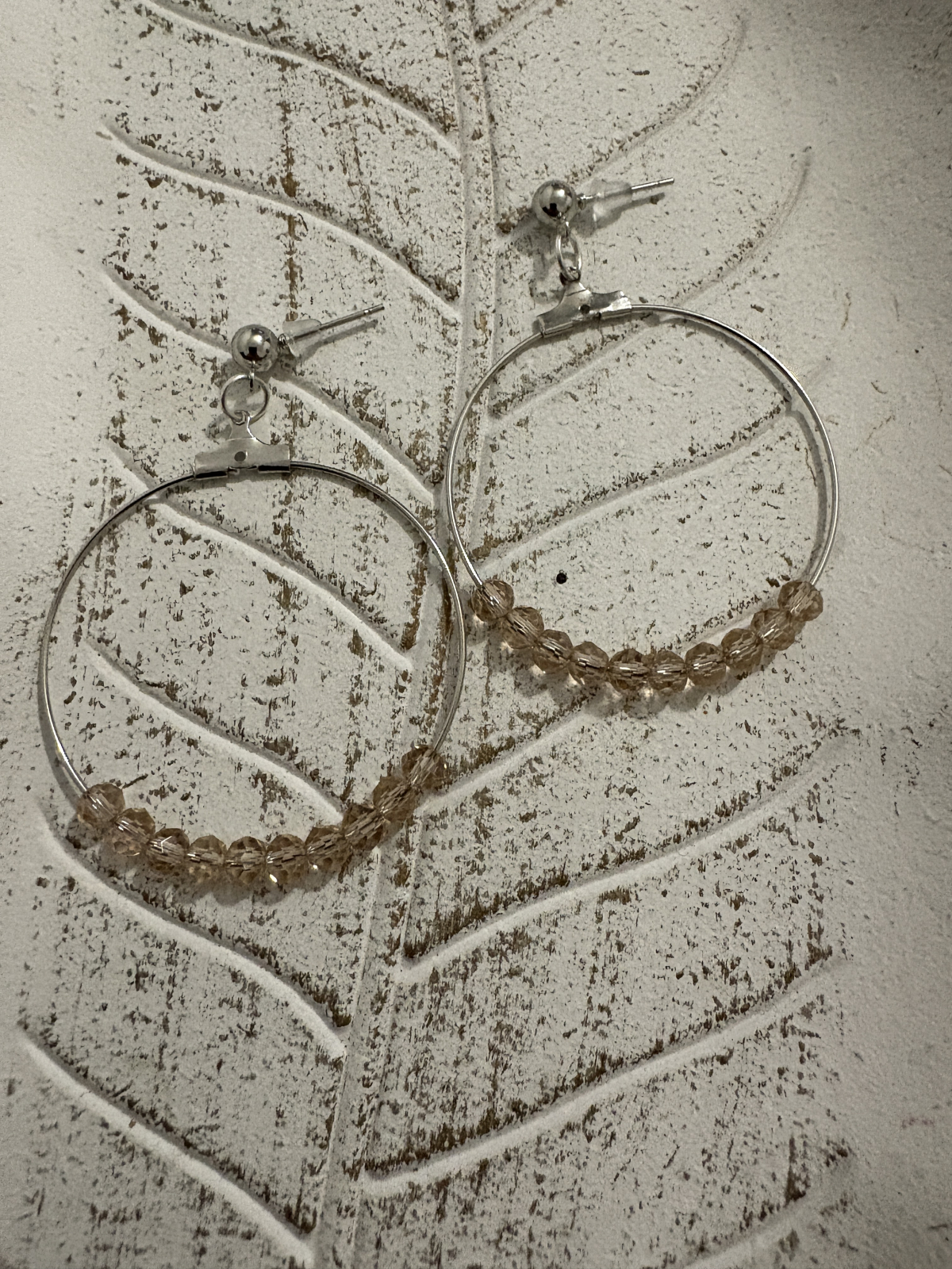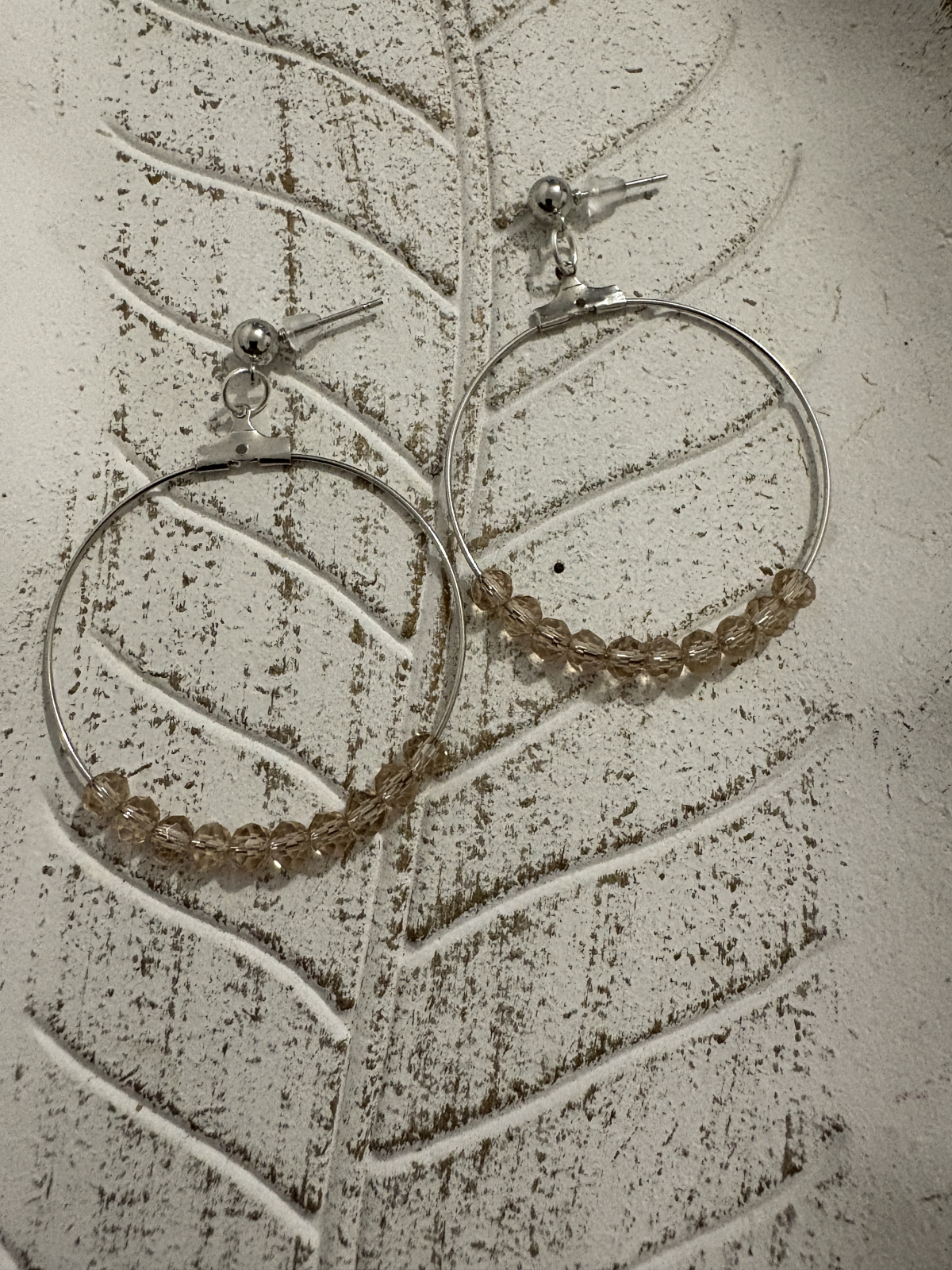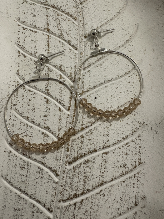 Cercei tip cerc realizați din cristale fațetate nuanță șampanie, cu reflexii calde și elegante.