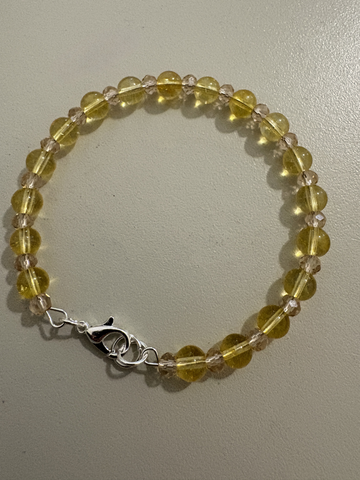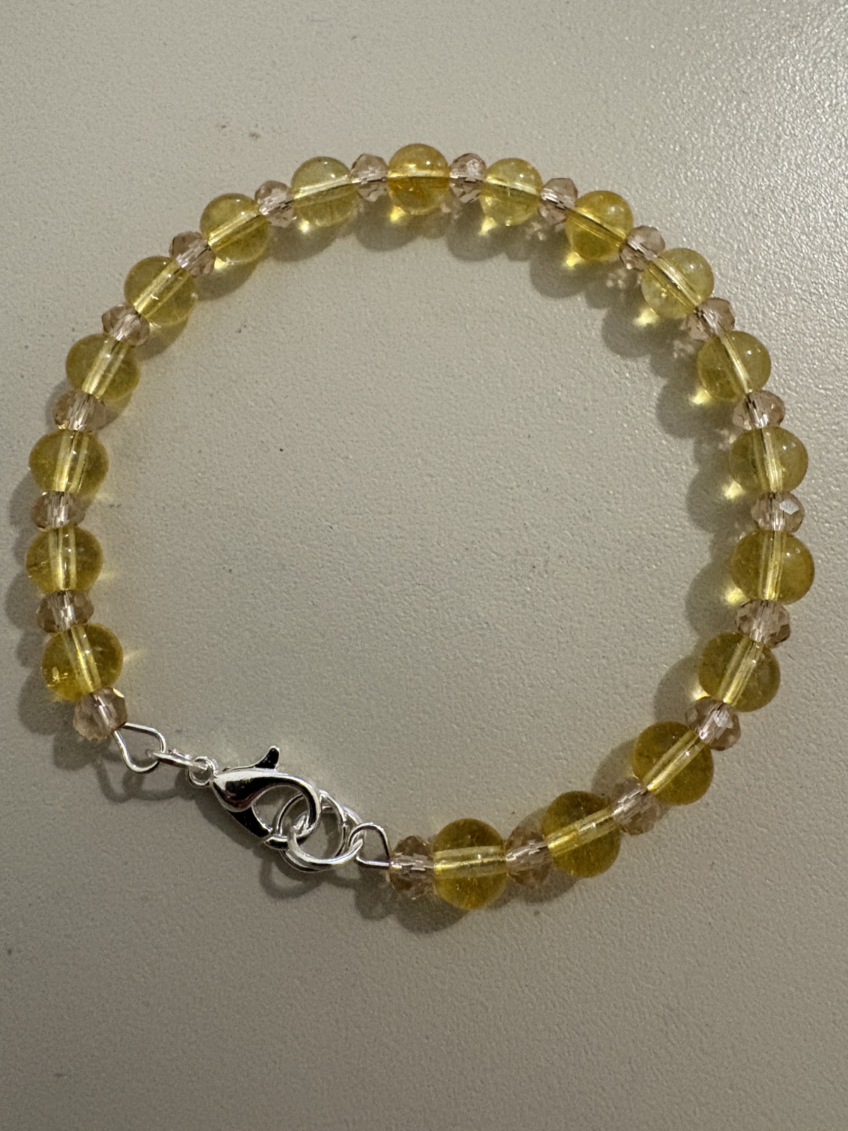 Brățară delicată realizată din citrin galben și cristale fațetate crem, montată pe fir rezistent cu închizătoare metalică.