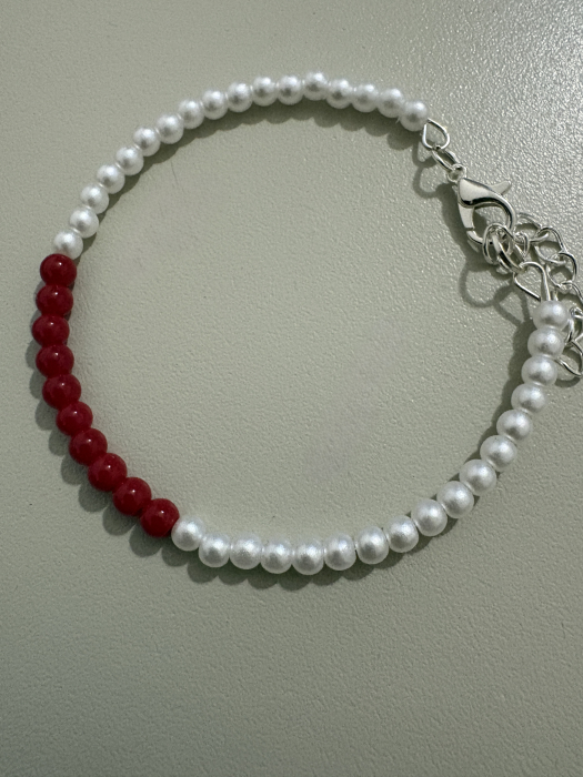 Brățară mărțișor handmade realizată din coral roșu și perle acrilice, creată ca simbol al feminității, vitalității și bucuriei de primăvară. Design delicat, ușor și confortabil, ideal pentru purtare zilnică sau cadou special.