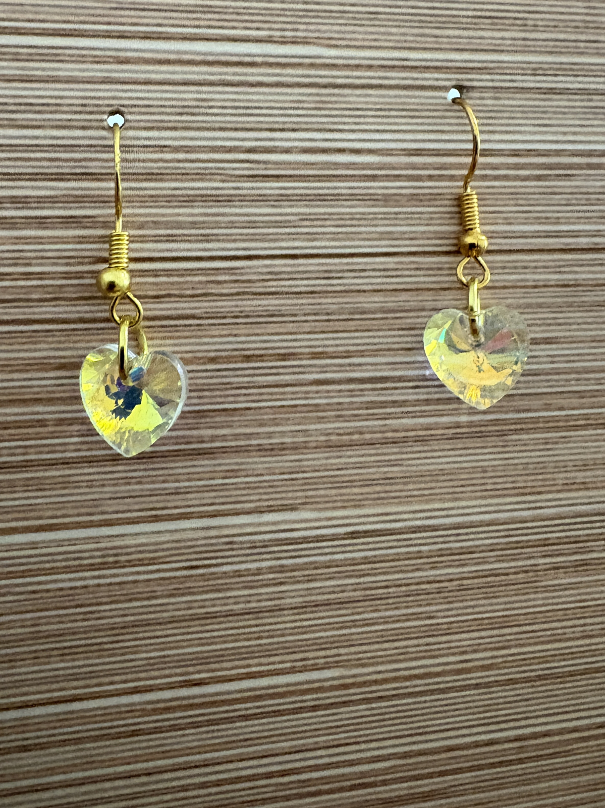 Cercei handmade cu cristale Preciosa transparente în formă de inimă, care captează și reflectă lumina într-un mod spectaculos. Designul minimalist îi face extrem de versatili, potriviți atât pentru ținute de zi, cât și pentru evenimente elegante.