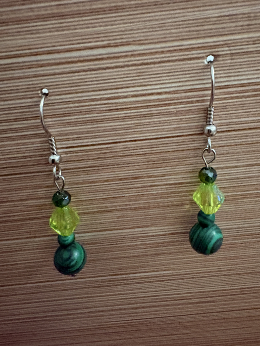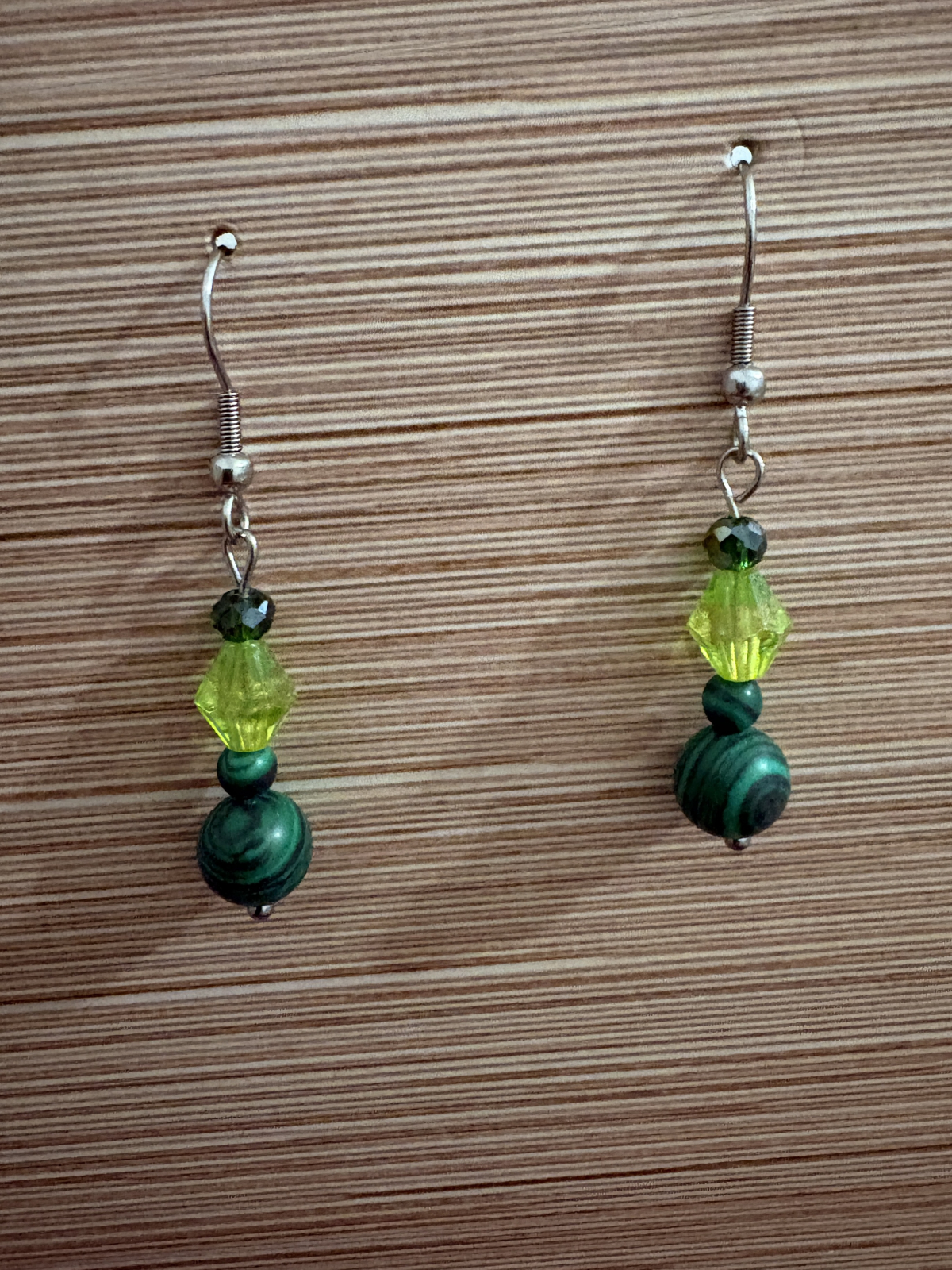 Cercei din malachit și cristale verzi pentru energie, protecție și transformare.