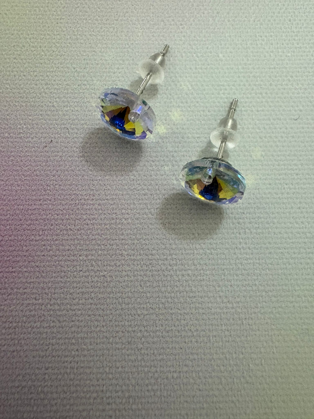 cercei cristal, cercei transparenți, cercei eleganți, bijuterii handmade, cercei aurora borealis, cercei chakra coroanei, cercei vibrație înaltă, cercei strălucire, cercei cu șurub, cercei minimal