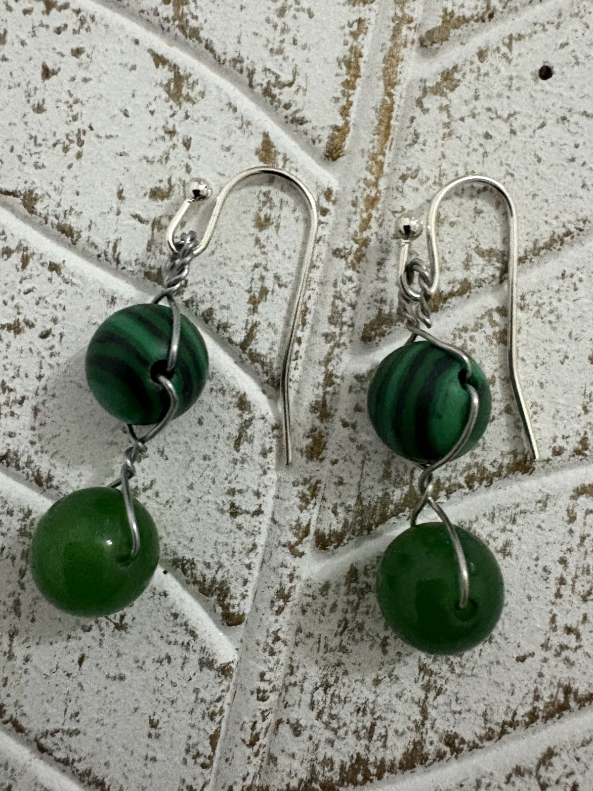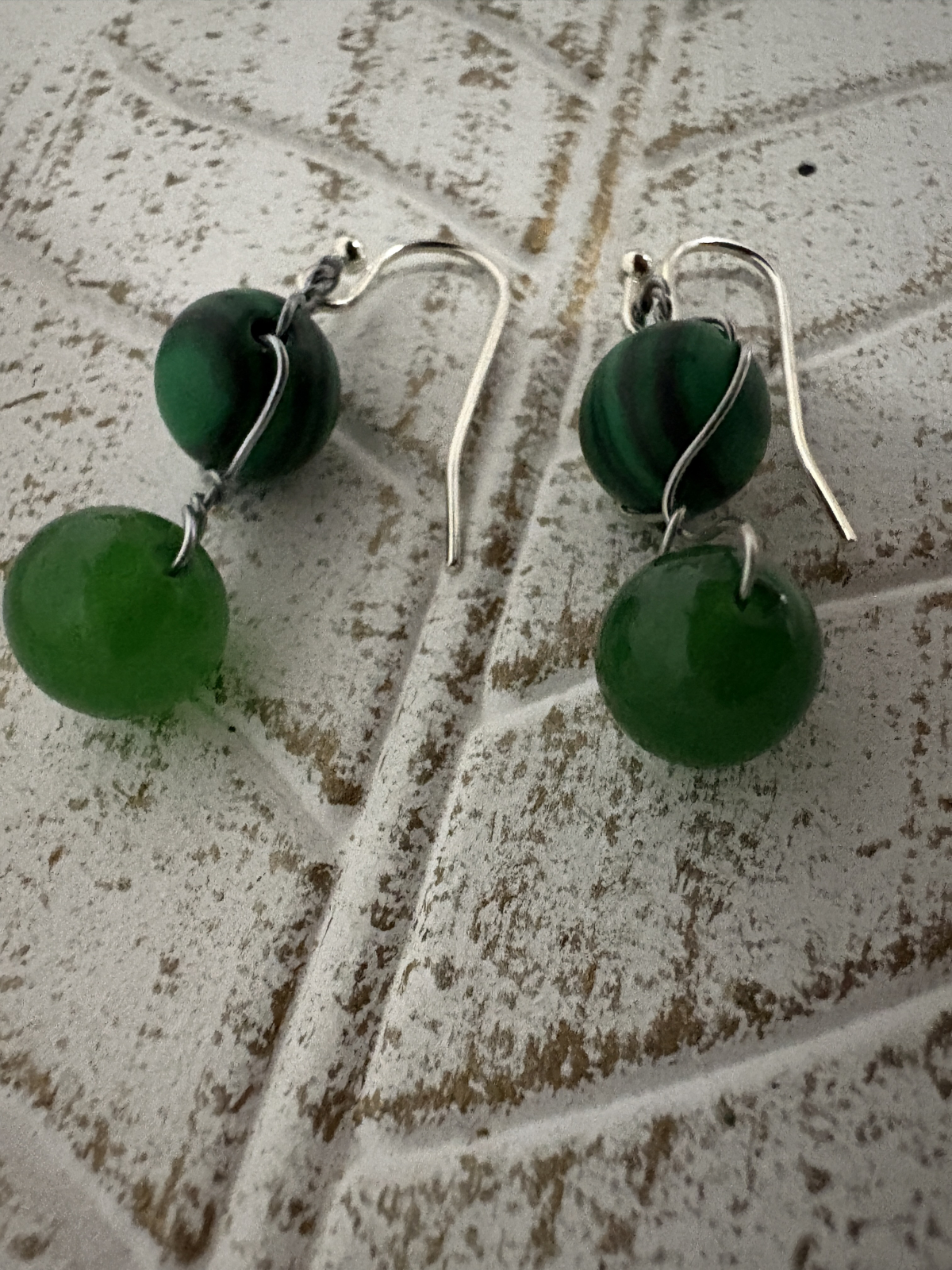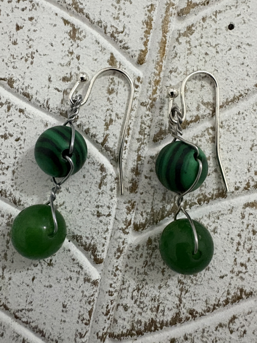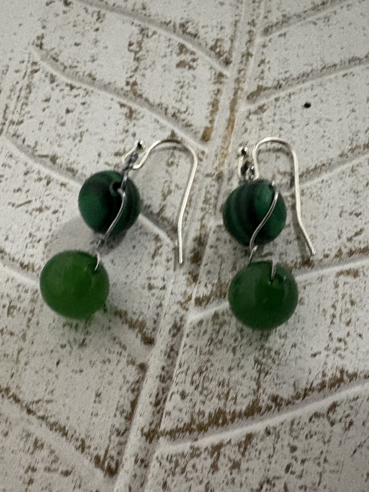 Acești cercei combinați din malachit și jad verde sunt o celebrare a echilibrului interior și al abundenței naturale.