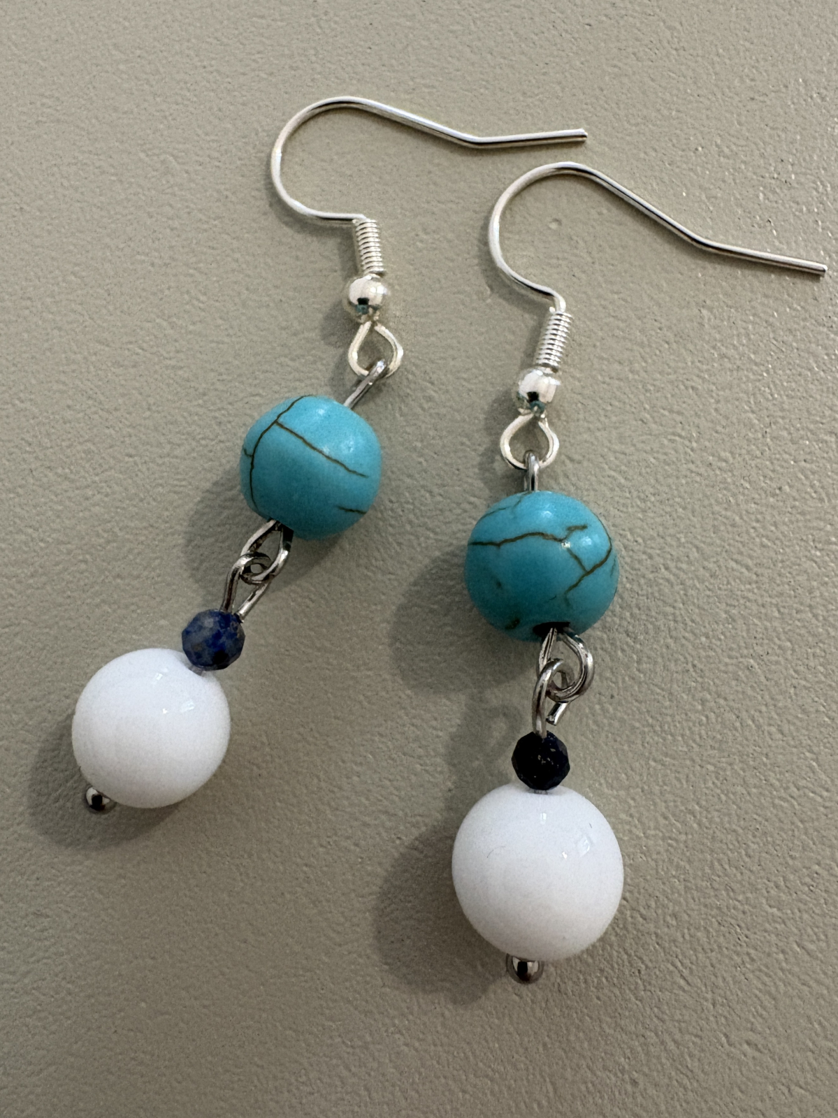 Cercei cu onix alb, lapis lazuli și turcoaz, realizați handmade pentru echilibru, protecție și claritate.