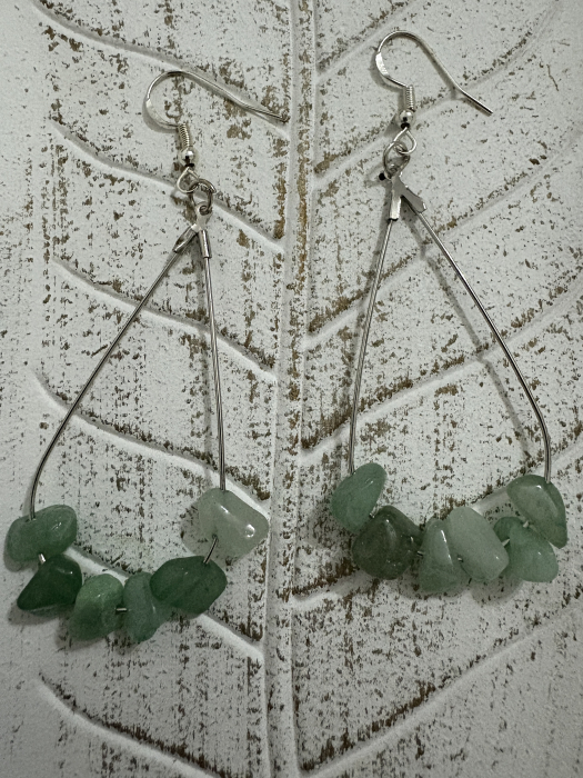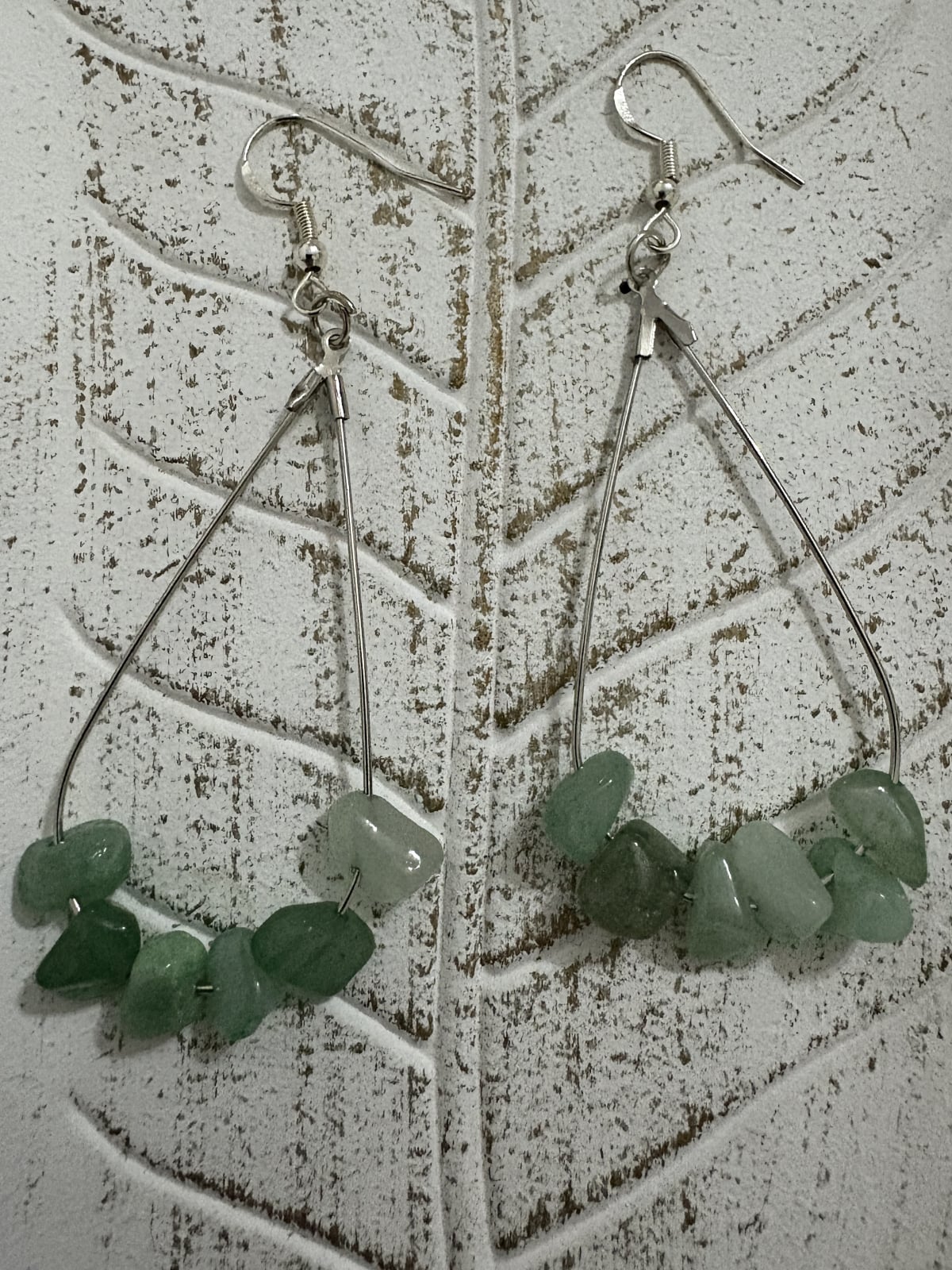 Cercei din Aventurin natural – piatră asociată cu norocul, echilibrul emoțional și chakra inimii. Bijuterie handmade, ușoară, ideală pentru liniște, optimism și bunăstare.