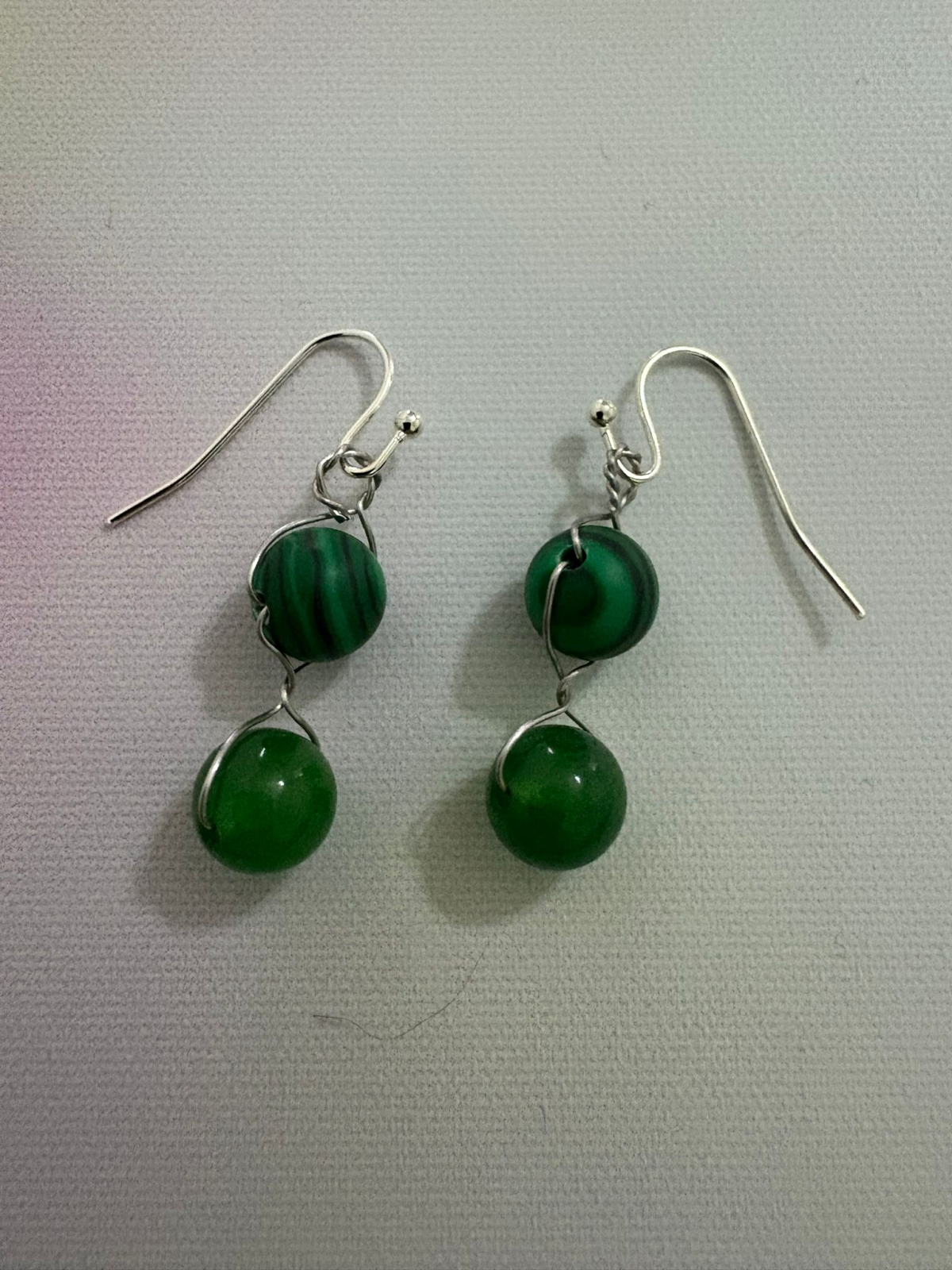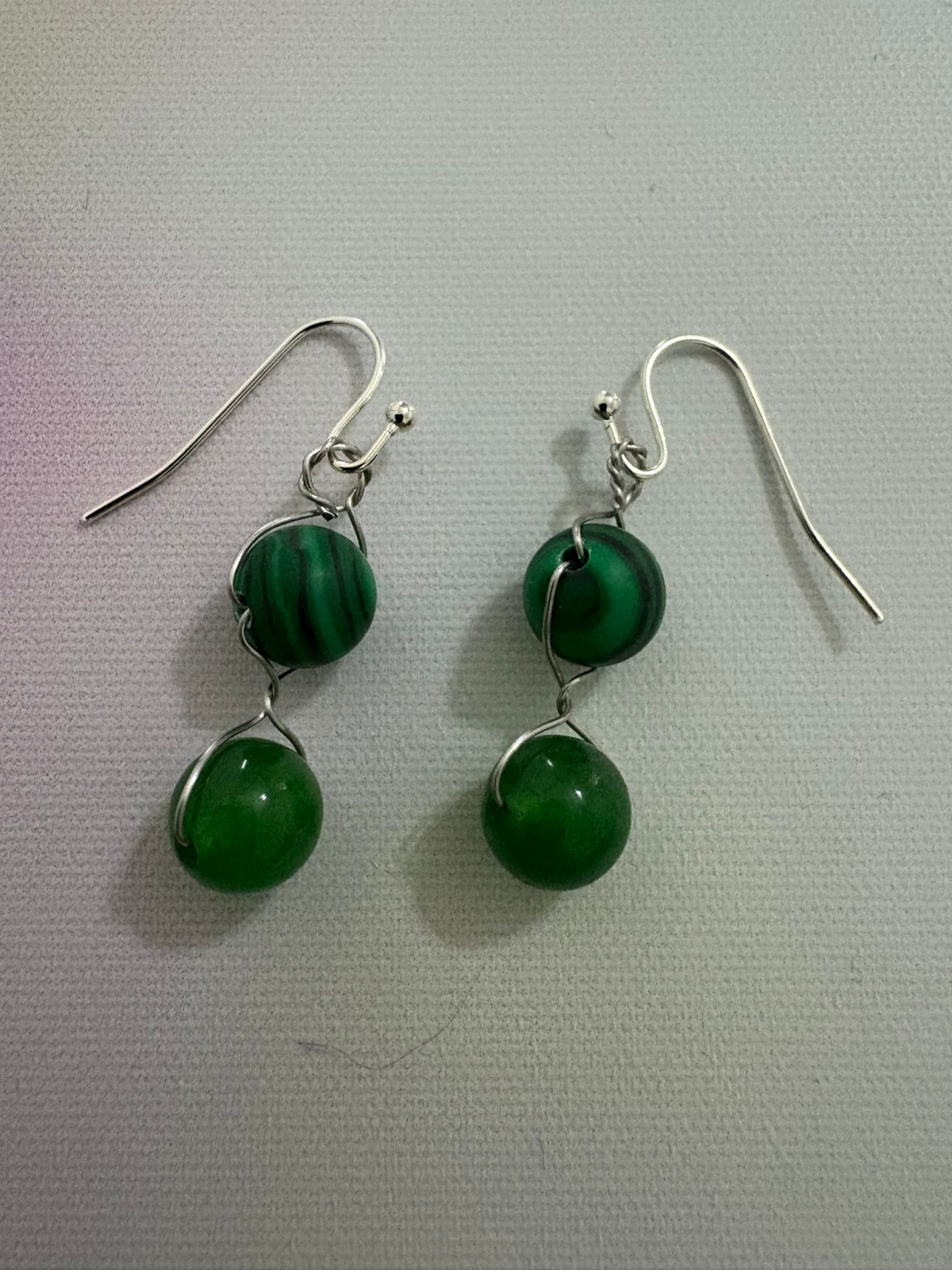 Acești cercei combinați din malachit și jad verde sunt o celebrare a echilibrului interior și al abundenței naturale.