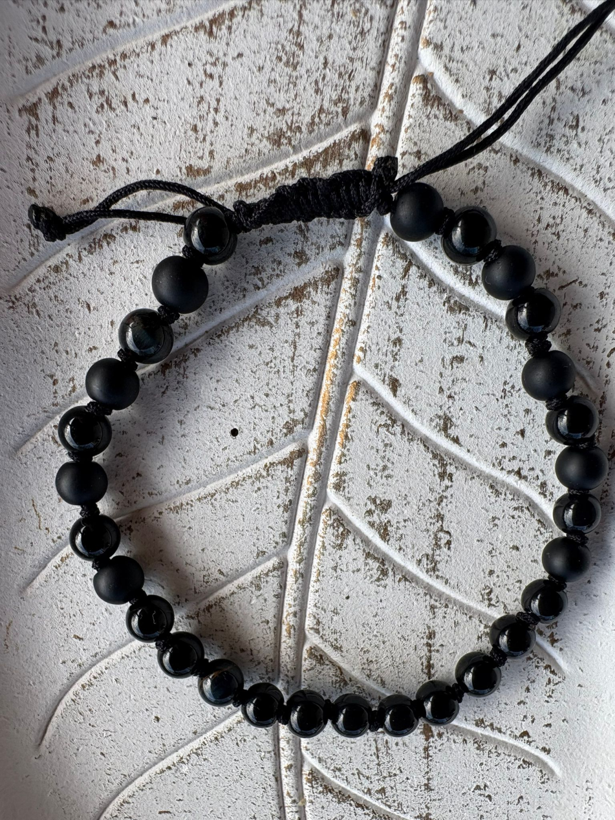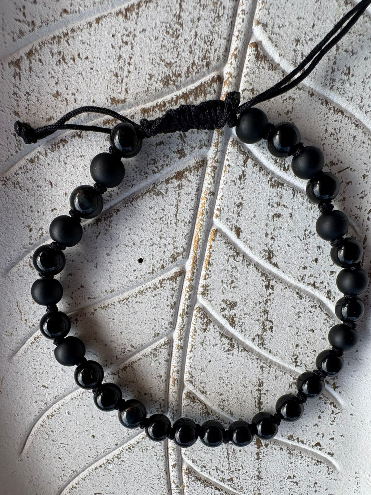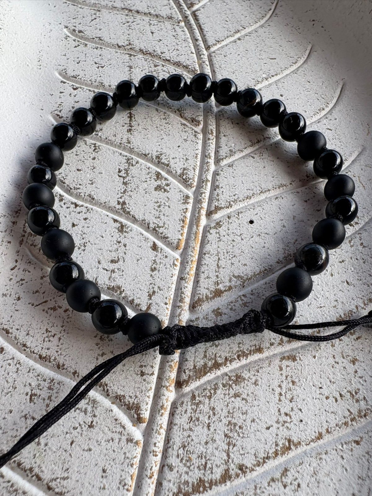 Brățară Șnur Onix Mat & Lucios – Protecție și Stil Unisex ⭐ Beneficii • Protecție zilnică • Stil modern • Ajustabilă Două texturi, un singur mesaj: putere interioară și echilibru. • Unisex & ajustabilă • Perfectă pentru purtare zilnică • Protecție energetică