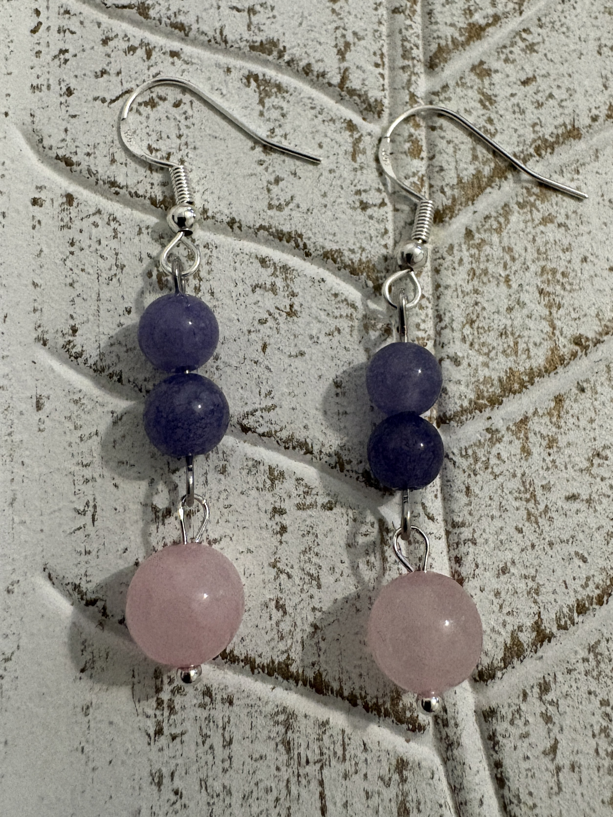 Cercei cu calcedonie liliac și cuart roz – bijuterie handmade a iubirii și calmului.