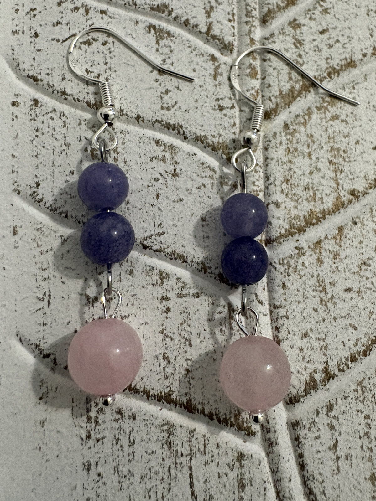 Cercei handmade din calcedonie liliac și cuart roz, creați pentru a aduce calm emoțional, iubire blândă și echilibru interior.
