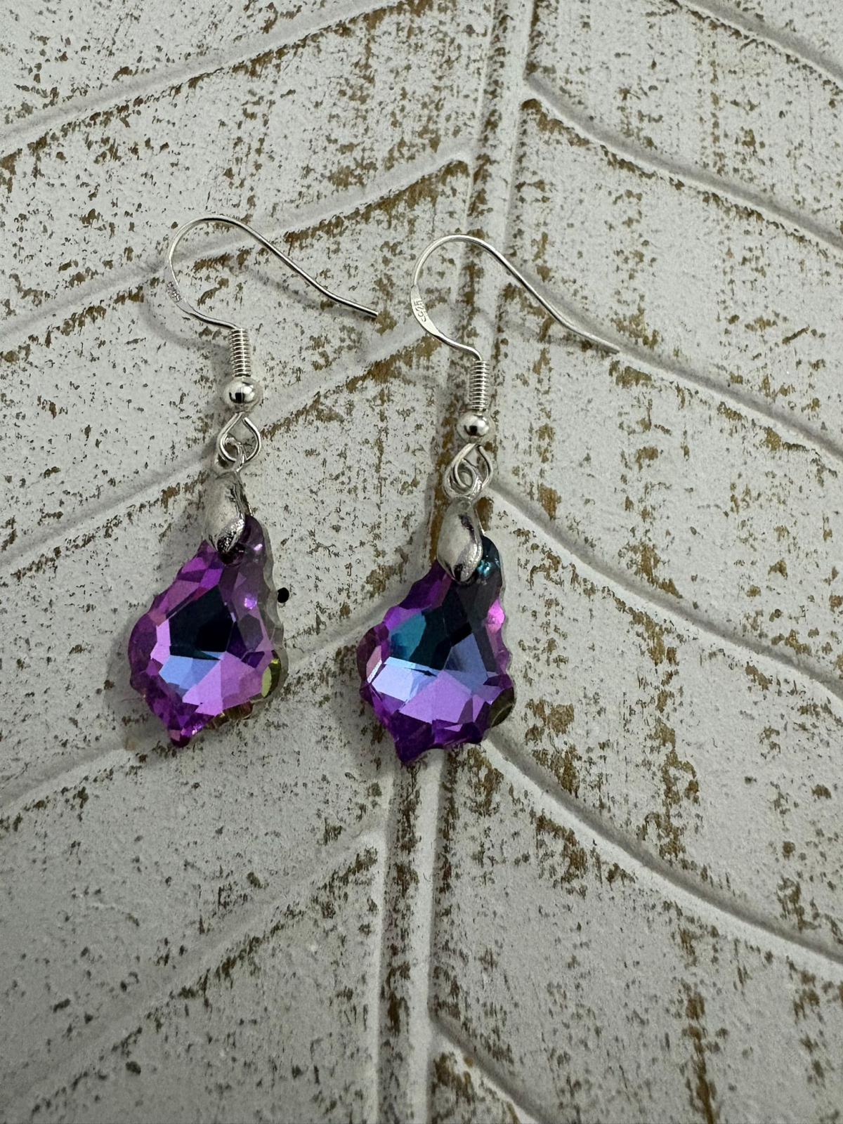 Cercei Cristal Mov – claritate, purificare și vibrație înaltă. Luminează energia interioară și aduce armonie.