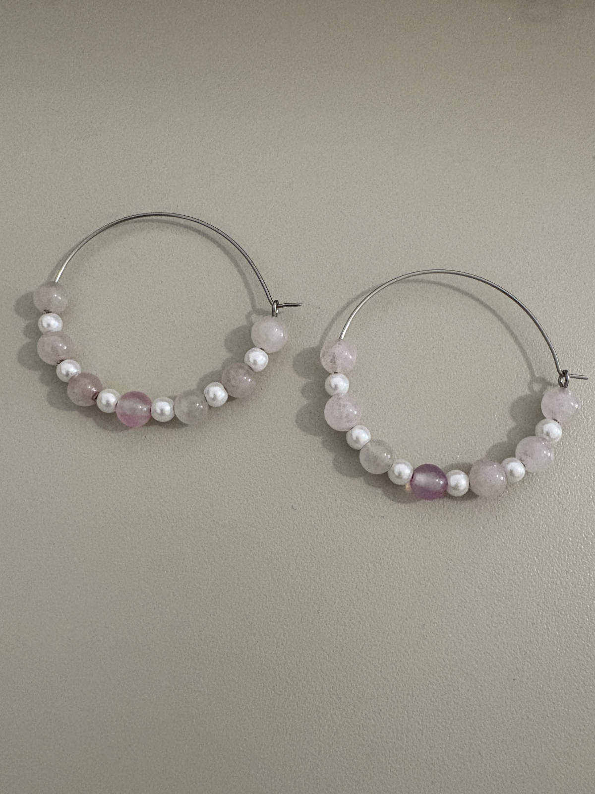 Descoperă cerceii "Cercei Magici" realizați din cuart roz și perle de sticlă, montați pe cerc hoops, un design delicat care exprimă feminitate, iubire și eleganță naturală.