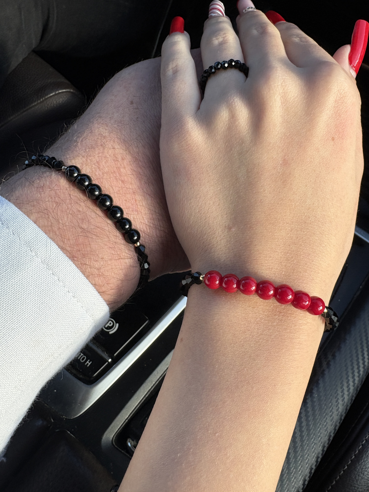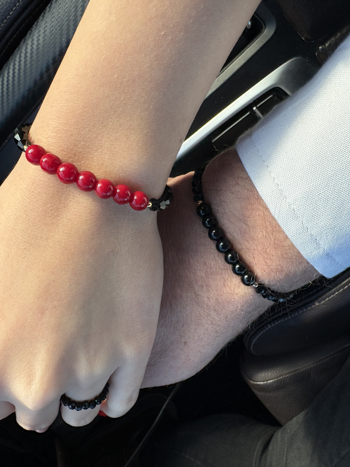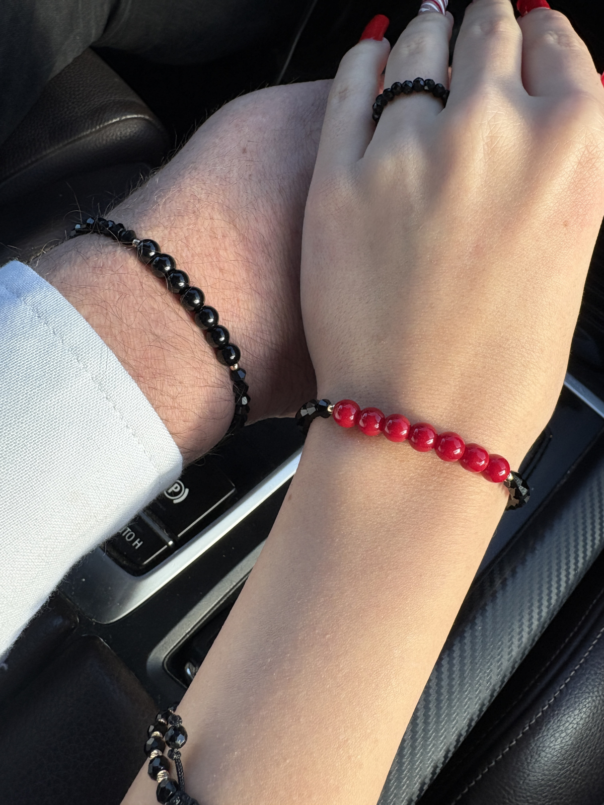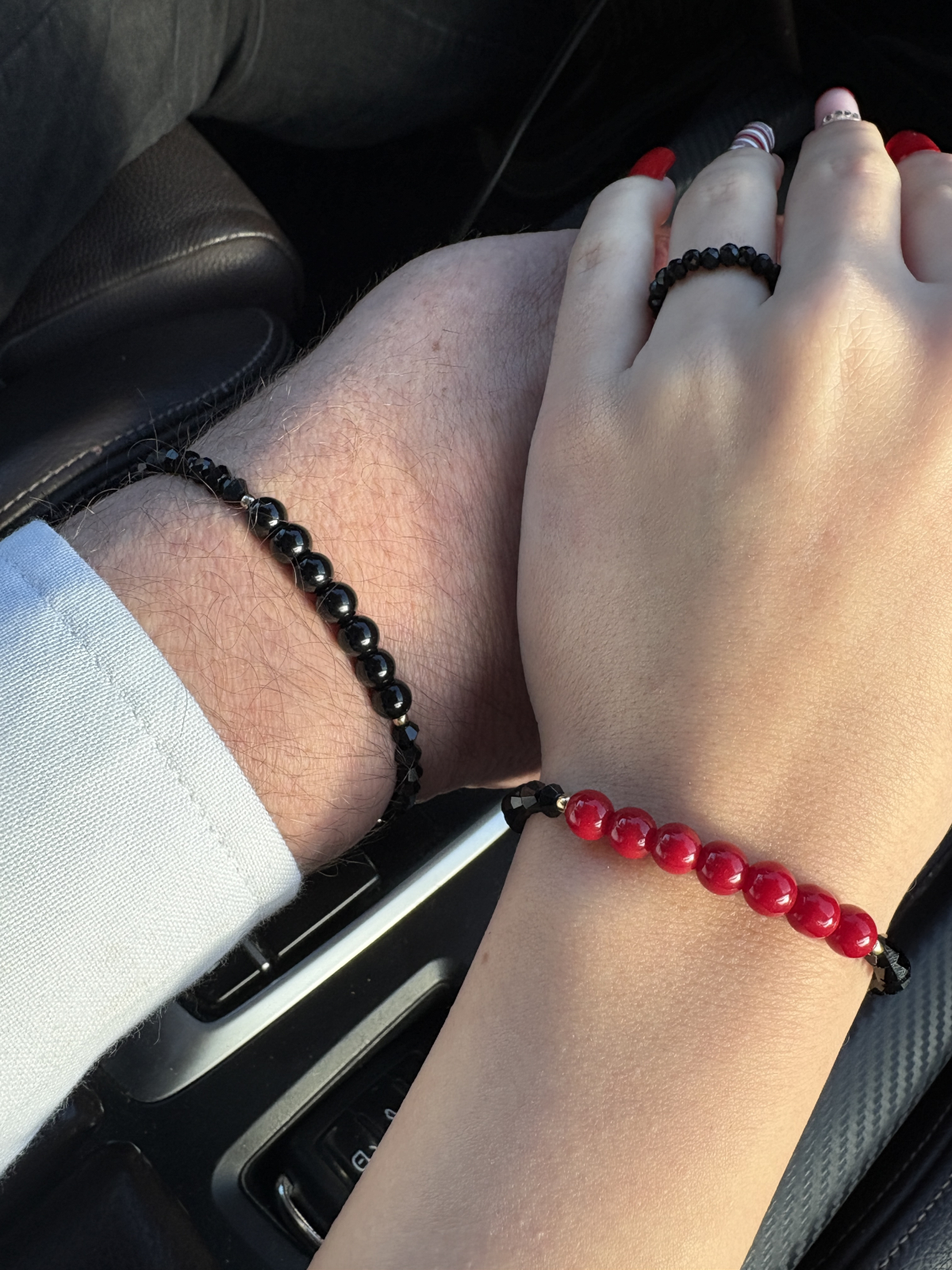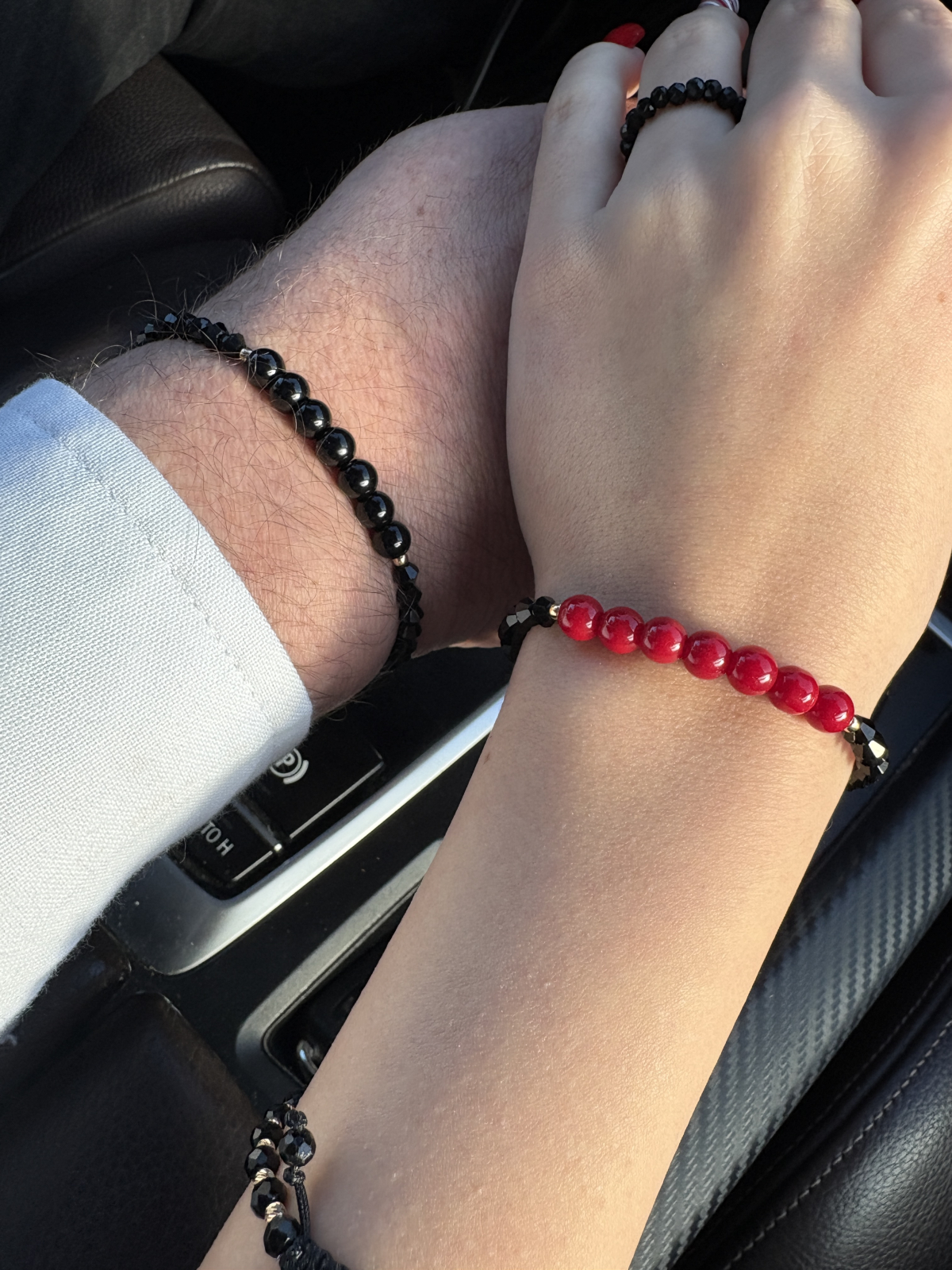 Set handmade el și ea din obsidian și agat roșu, creat pentru cupluri care își doresc protecție, pasiune și o legătură autentică.