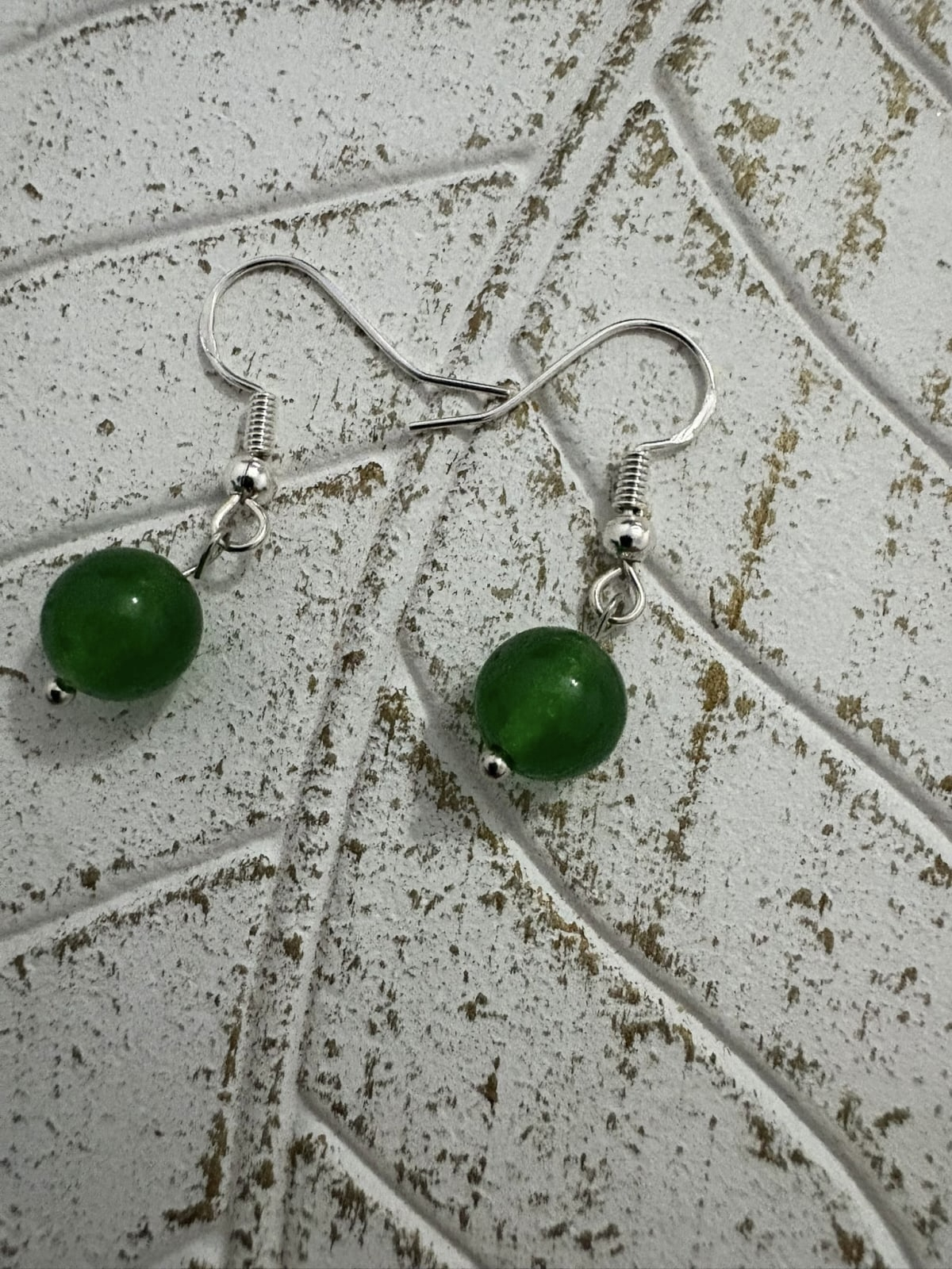 Cercei eleganți din Jad Verde, realizați manual. Jadul este cunoscut pentru energia sa calmantă și pentru atragerea norocului. Ușori, confortabili și perfecți pentru purtare zilnică.