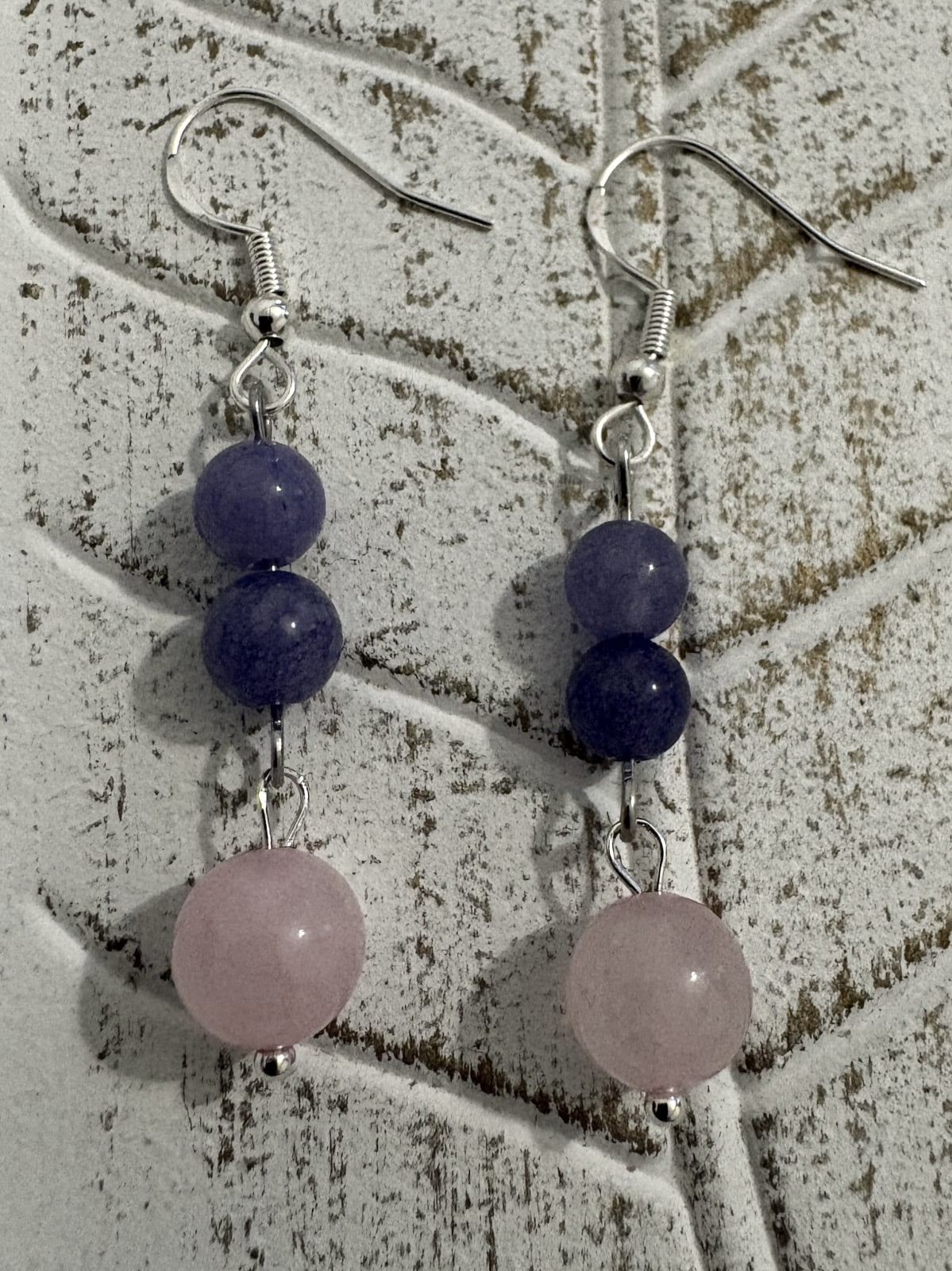 Cercei handmade din calcedonie liliac și cuart roz, creați pentru a aduce calm emoțional, iubire blândă și echilibru interior.