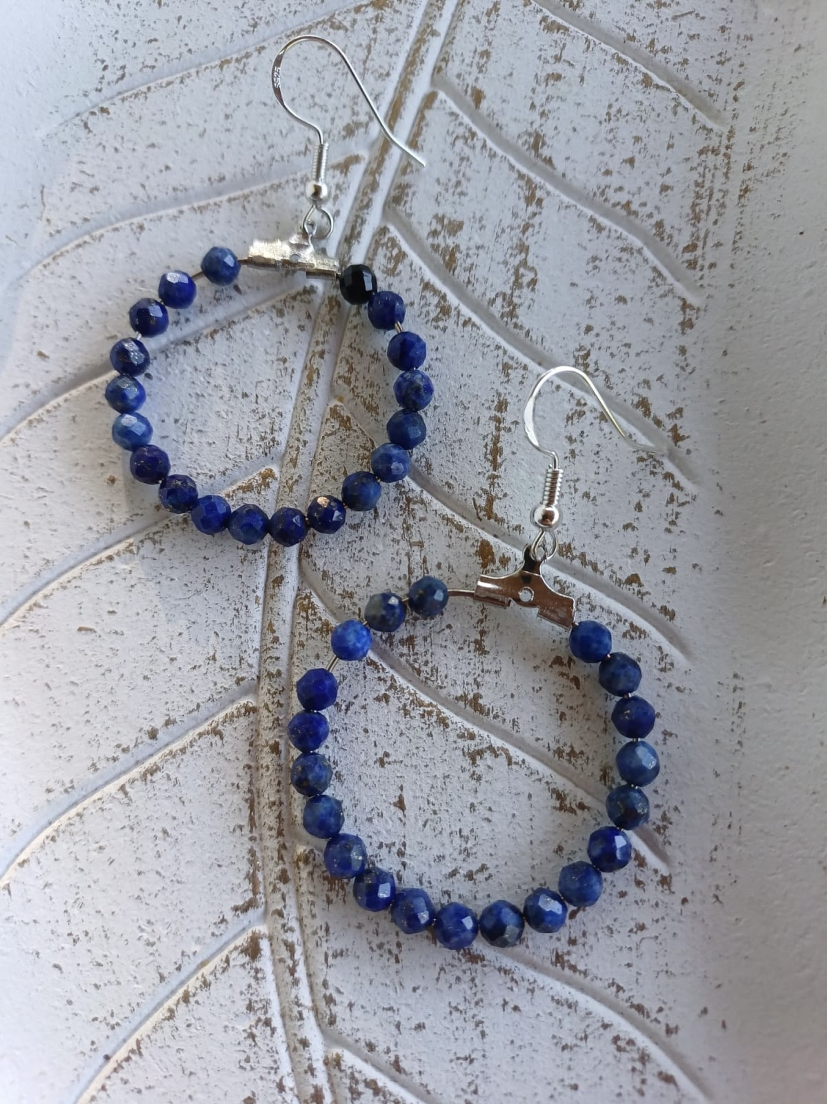 Cercei rotunzi cu lapis lazuli – bijuterii handmade naturale